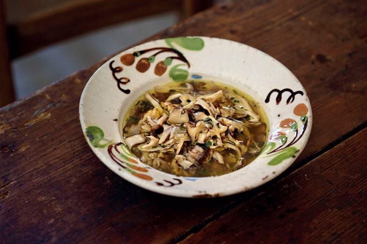 今回の7品は、なかでも"エスプレッソ(さっと)"にできる料理を厳選。「野菜はくったりするまで火を通して旨みを出します。ここで使うハーブと食材の組み合わせは、イタリア料理の定番。素材の組み合わせはシンプルなのに、香りと旨みがぐっと上がる技が、どの料理にも生かされています」