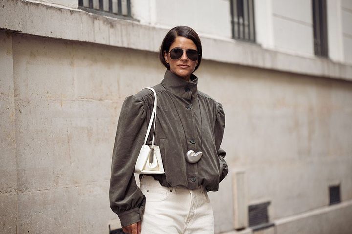 ランウェイ以外のシーンでも、クリーンな白Tシャツやリラックスした雰囲気のブラウスに合わせるなど、コードネックレスは多様なコーディネートに取り入れられている。