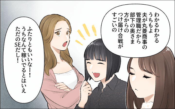でも3ヶ月も経つと、だんだんグループの空気が見えてきたようです。高いランチ代に、話題は毎回夫自慢…。