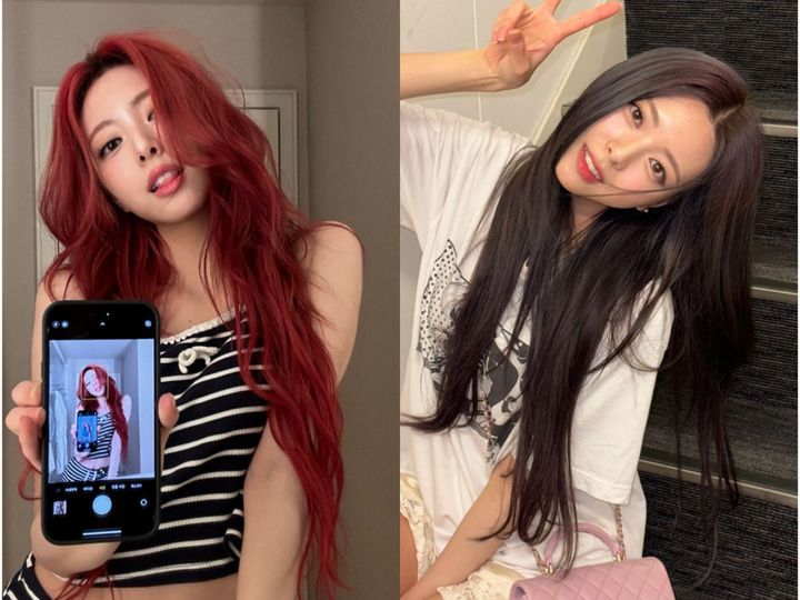 約半年に及ぶ赤髪を卒業し、ファンを驚かせたITZYユナ。腰まで伸びるロングヘアはそのままに、ダークアッシュカラーで印象をグッと落ち着かせて。