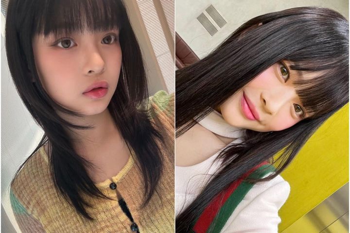 ITZYのマンネ、ユナがシースルーバングに挑戦! 前髪の内側を薄くとってカットすれば、分けたヘアスタイルも両方楽しめるので一石二鳥。