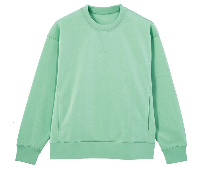 コーデのアクセントになるカラースエットがかなり使える。ワ ークマンのスエットは、カラバリはもちろん、機能面も優れた名品揃い。スエット ¥980(ワークマン)