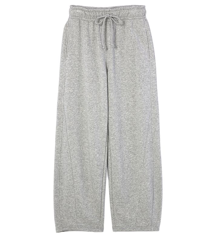 スエットパンツは、洗練された雰囲気を纏わせてくれるバレルシルエットにアプデ。キレイめアイテムや甘いトップス合わせて、ラフなのにしゃれてる大人の余裕あるコーデを楽しみたい 。スエットパンツ ¥2,990 (GU)