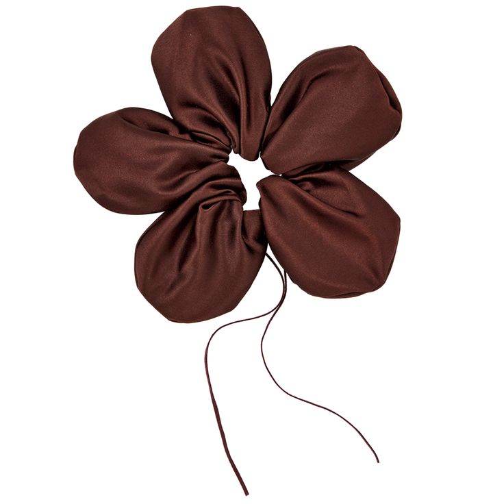 フラワーシェイプのビッグシュシュは、髪を結ぶのにはもちろん、手首につけているだけでもかなり映えて可愛い♡ 高見えな光沢感ある生地と、どんなスタイルにも合わせやすいブラウンカラーが推し。シュシュ ¥1,980 (GOLDY)