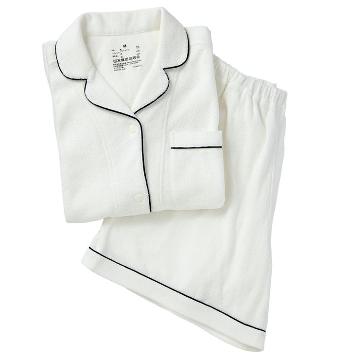 寝るときだって可愛くありたい全女子にオススメしたい無印良品のパジャマ。パイル地素材は暑い日だって超快適。素材やデザインのバリエも揃う、パジャマ展開に注目。パジャマ セット アップ ¥4,990 (無印良品/無印良品 銀座)