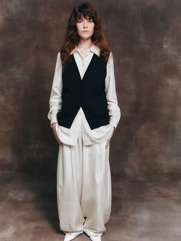 vest ¥320,100 and shirt ¥284,900 by THE ROW THE ROW JAPAN