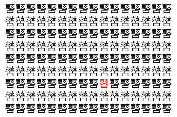 【脳トレ】「䵿」の中に紛れて1つ違う文字がある!?あなたは何秒で探し出せるかな??【違う文字を探せ!】