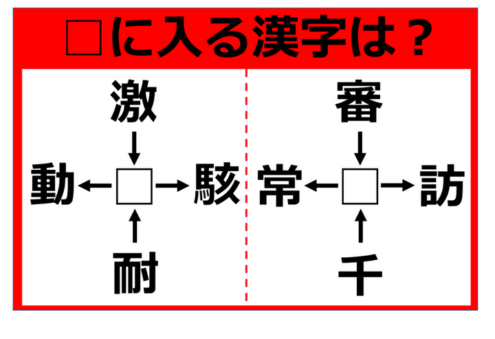 【漢字パズル】激□、□動、耐□、□駭 □に入る漢字は何…!?
