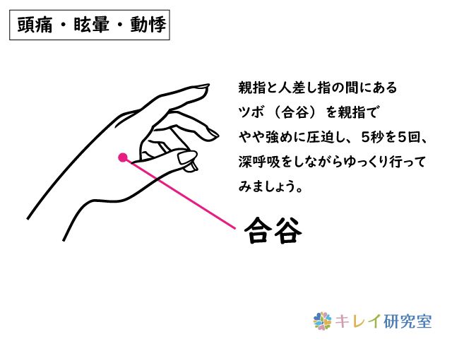 おすすめのツボとして、親指と人差し指の間にある合谷というツボが有効です。