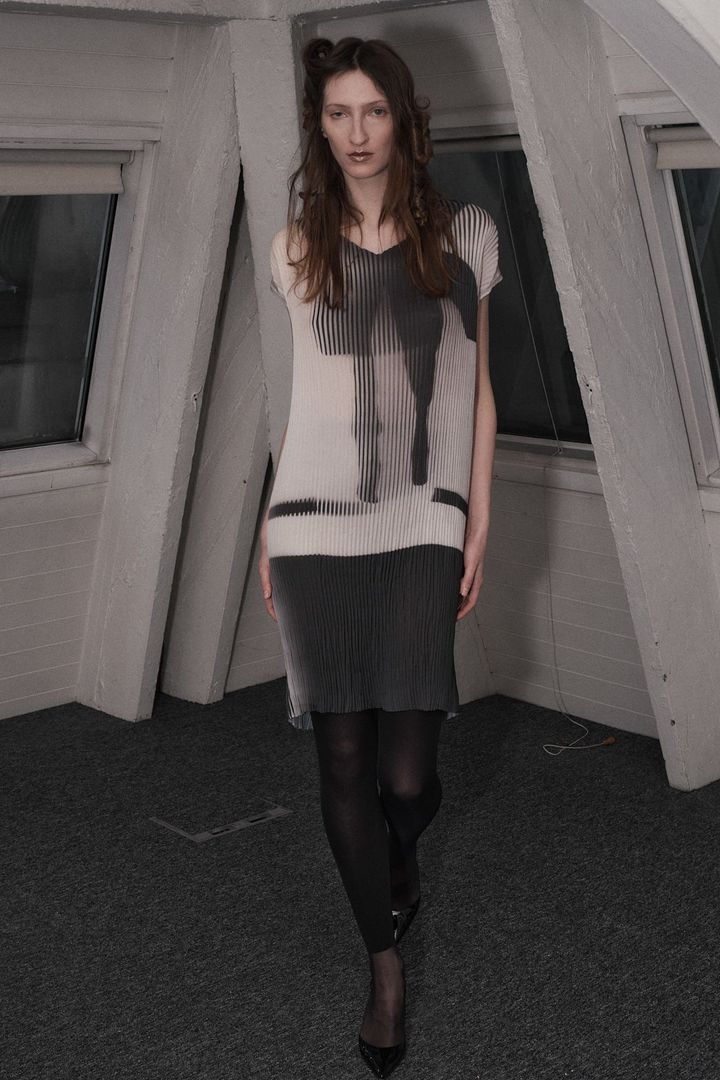 スウェーデン出身のデザイナー、ペトラ・ファーゲルストロムは、セントラル・セント・マーチンズの2025年MAショーで注目を集め、動きに合わせて見え方が変化するレンチキュラープリーツを武器に頭角を現した新鋭だ。卒業後すぐに主要セレクトショップでの展開が始まり、本年度のLVMHプライズではセミファイナリストにも選出。今季、ロンドン・ファッションウィークにて初の単独プレゼンテーションを開催した。