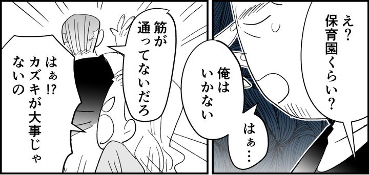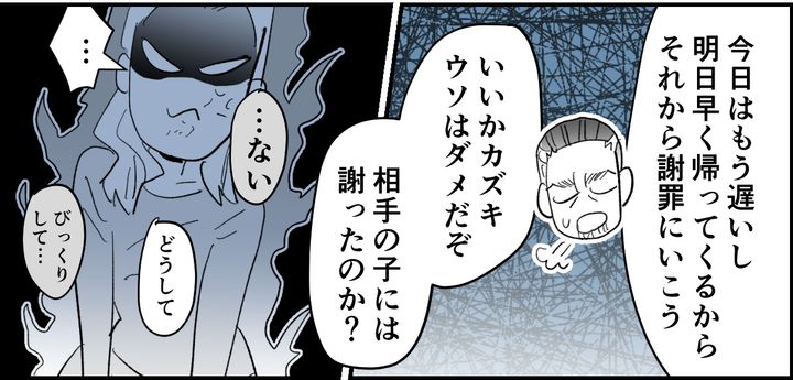 ……しかし旦那はカズキの話をまったく信じず、警察の事情聴取のように問い詰めて、挙句の果てには「筋が通らない。謝罪じゃないなら相手のところには行かない」と言うのです。