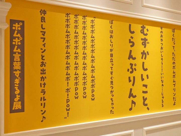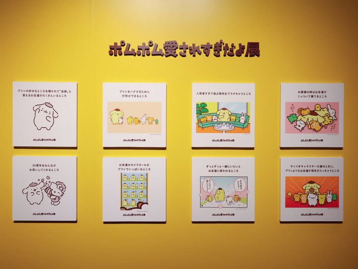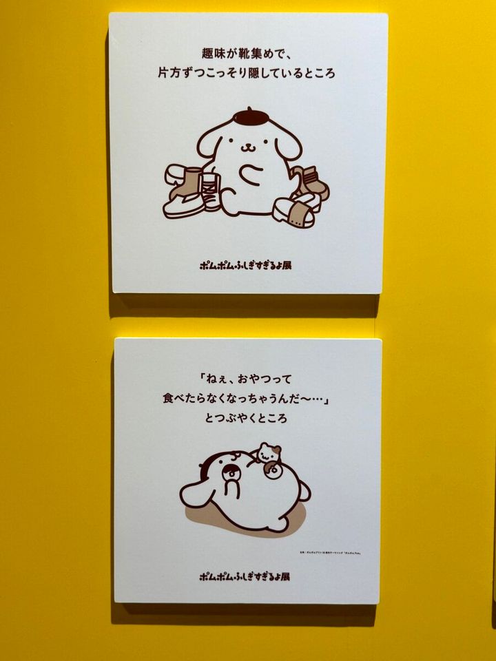 フォトスポットをはじめポムポムプリンが館内各所に登場し、可愛い魅力がたっぷりつまった特別展「ポムポムすぎるよ展」。約200点の展示では、かわいさ・やさしさ・ふしぎさなど、さまざまな魅力を9つの「〇〇すぎるよ」で表現しています。懐かしい一面からあまり知られていない意外な一面まで、思わずにこにこしながら眺められます♡
