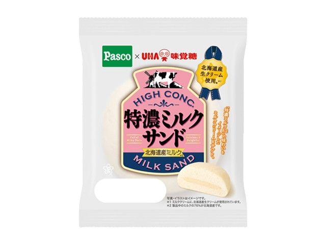「特濃ミルク8.2」とのコラボ! ふんわりしっとりとした生地で、UHA味覚糖のキャンディ「特濃ミルク8.2」の味わいをイメージしたミルククリームを挟みました。 カロリー:254kcal 【販売地域】関西・中国エリア/中部エリア/四国エリア/九州エリア