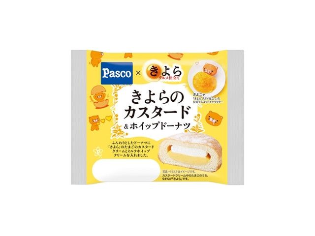 ブランド卵「きよら グルメ仕立て」とのコラボ! ふんわりとした食感のドーナツでカスタードクリームを包み、ミルクホイップクリームを入れました。 カスタードクリーム中のたまごのうち、94%が「きよら」です。 カロリー:313kcal 【販売地域】関西・中国エリア/中部エリア/四国エリア