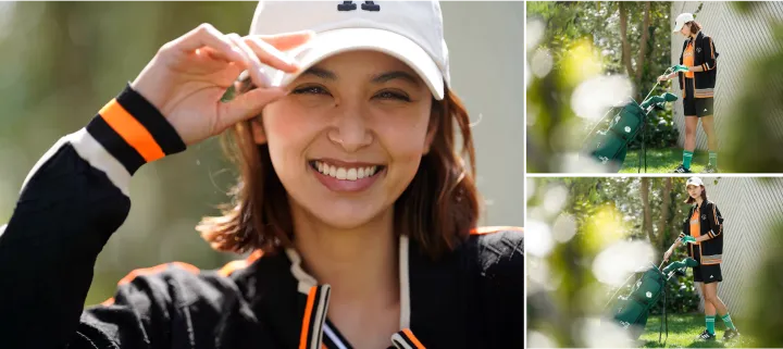 撮影/水田 学(NOSTY) スタイリスト/林かよ モデル/石井エミリー ヘア&メイク/Tomo Tamura(Perle) 構成/武田麻衣子 クラブ協力/ゼクシオ14 レディス(ダンロップスポーツマーケティング)