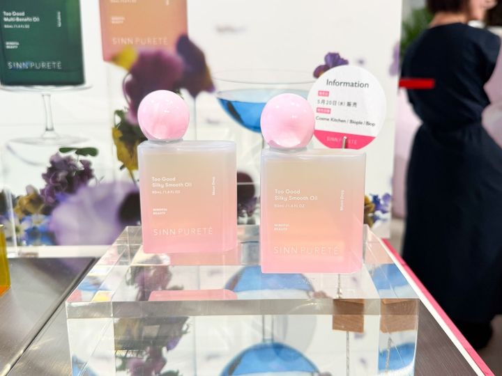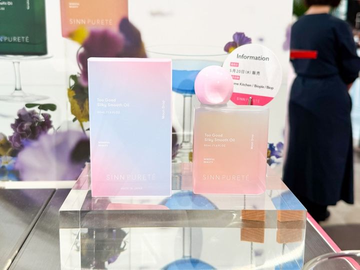 SINN PURETÉのブースでは、香り好きかつ美容好きな桜田通さんとコラボレーションした2つのヘアオイルが並んでいました。