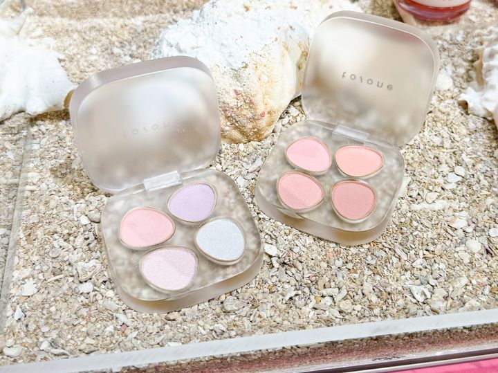 <カラー展開> 09 Seaside Mist:白を溶かし込んだソフトマットなモーブとベビーピンクにクリアなガラスパールがきらめくソルベカラーをセットした、涼やかな透明感が際立つヘイジーパステルパレット 10 Sunset Float:肌につながるマットなペールアプリコットとコーラルピンクに艶やかなヌードブラウンと陽射しにきらめくベージュをセットした、ヘルシーな魅力を引き立てるサンキスドパレット