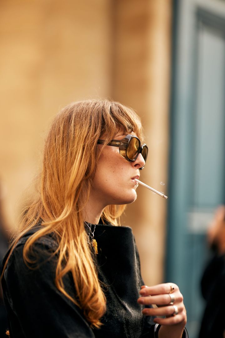 重めのバングと無造作なロングヘアでノンシャランに。「ドライなロングヘアがとてもクール。ノンシャランな印象にしたい人にぴったりなスタイル」(LISAさん)