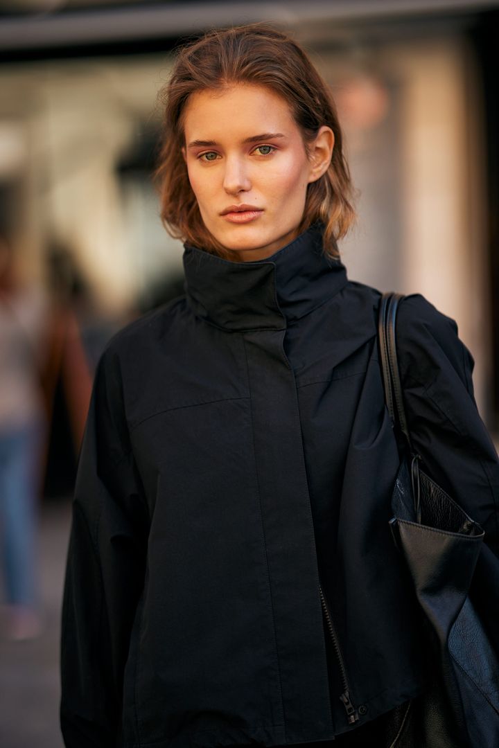 ニュアンスのあるウェーブが、重厚なハイネックの黒ジャケットに軽やかさをプラス。「さっと手ぐしでかき上げただけのような、自然体なナチュラルボブに憧れます」(KEIKOさん)