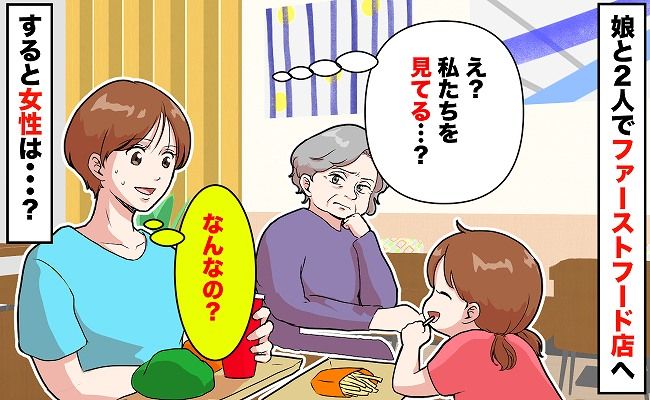 ある日、子どもを連れてファストフード店に行ったときのことです。隣のテーブルにいた高齢の女性からかけられた言葉に、私はとても戸惑ってしまいました……。