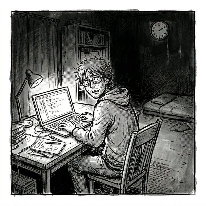 大学の課題に追われ、時計の針が深夜2時を回った頃のことです。一人暮らしの静まり返った部屋で、私は黙々とパソコンに向かっていました。耳に届くのは、カタカタと規則正しく響くタイピング音だけ。