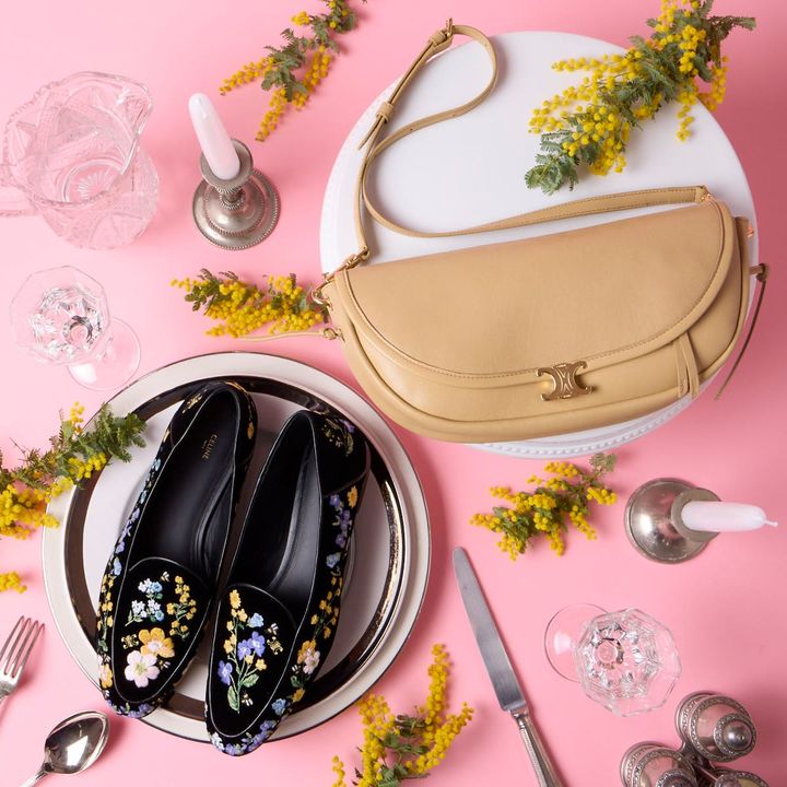 “リトルハーフムーン ソフトトリオンフ”バッグ(W25×H13×D5cm)¥390,500、シューズ(H0.5cm)¥198,000(共に予定価格)/共にセリーヌ(セリーヌ ジャパン) Hearst Owned