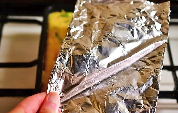 アルミホイルで蓋をして、弱火で7~8分焼きます。