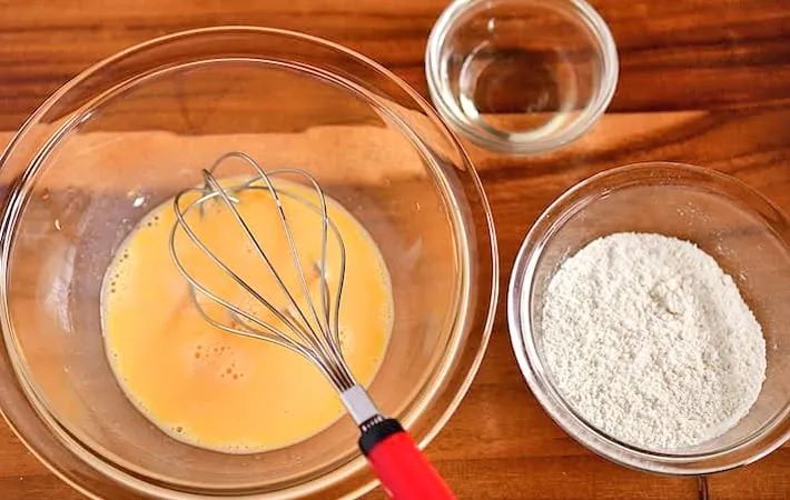 ホットケーキミックス、サラダ油を順に加えて混ぜましょう。