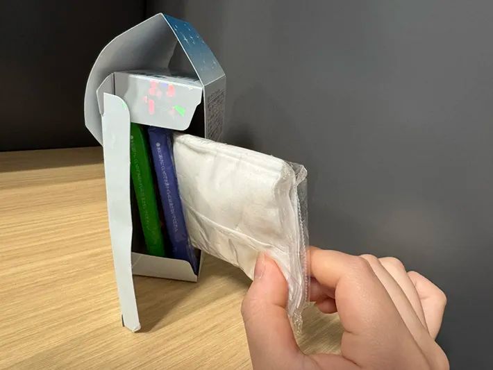 箱の横から取り出す形で、ポケットティッシュが3個ほど入りました。