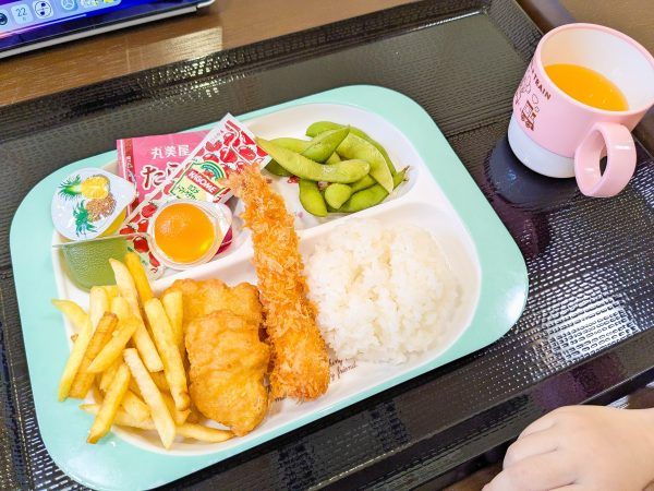 娘はお子様ランチ。 サクサクのエビフライやポテト、デザートまでついて娘も大満足です♪