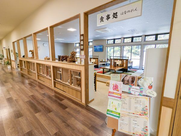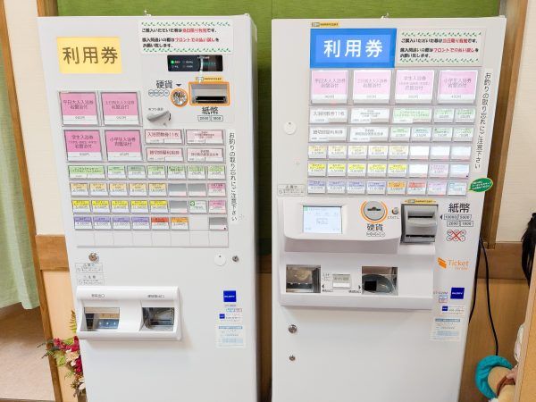 それぞれの食券機で購入しますが、「はなみずき」で購入した食事を、食事処「はなのれん」でいただくことも可能です。 家族など複数人で利用する場合も、一緒に食事ができるよう工夫されていました。