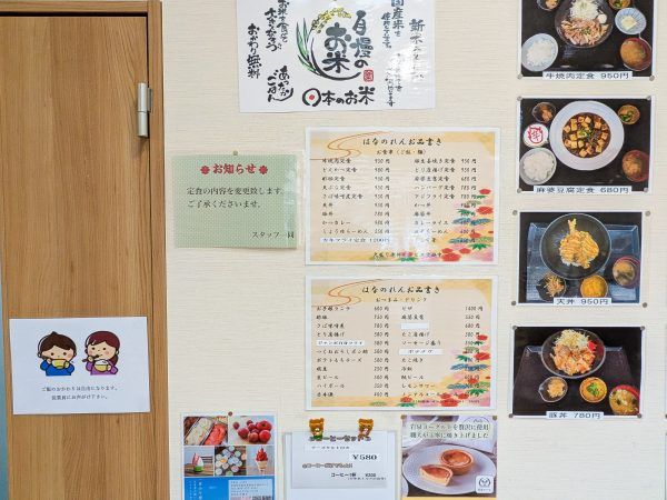 食事処「はなのれん」では、定食やラーメンなど多彩なメニューが揃い、アルコールやデザートの提供もあります。