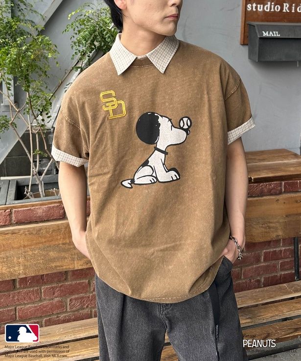 「MLB×PEANUTSコラボ バイカラーシアーニットシャツ(サンディエゴ・パドレス)」(9350円)