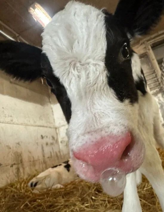 鼻ちょうちんを作って「おはよう」!カメラを見つめる牛の姿
