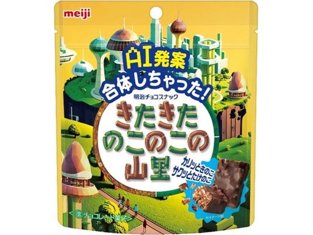 ひとくちサイズのチョコスナックです。「きのこの山」の“カリッ”としたクラッカーと「たけのこの里」の“サクッ”としたクッキーを砕き、これにミルク風味のチョコレートと小麦パフを加えてバー状に成型し、最後にビターチョコレートでコーティングしています。ザクザクとした食感と、ミルク風味とビター2種類のチョコレートの味わいをお楽しみいただけます。