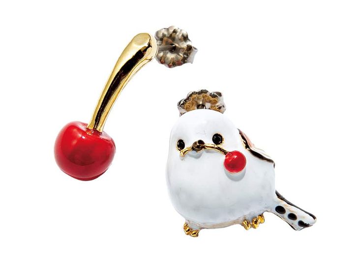 シマエナガ&赤い実のセットピアス[ハンカチ付き]¥18,700(ヴァンドームブティック/ヴァンドームブティック 大丸東京店)