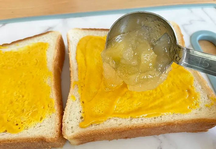 2. 塗ったら挟んで焼くだけ! 手軽な食パンアレンジに、家族が「オシャレ」「また作って!」【りんごジャム活用】