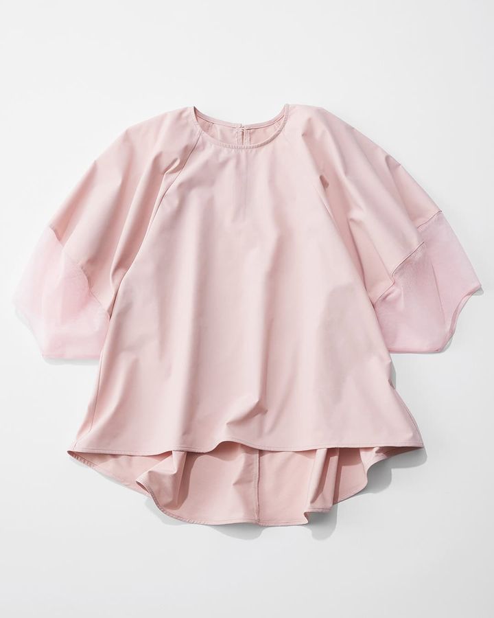 【No.1】二の腕をオシャレにカバー!チュールの透け感がほんのり甘い「ランタンスリーブブラウス」
