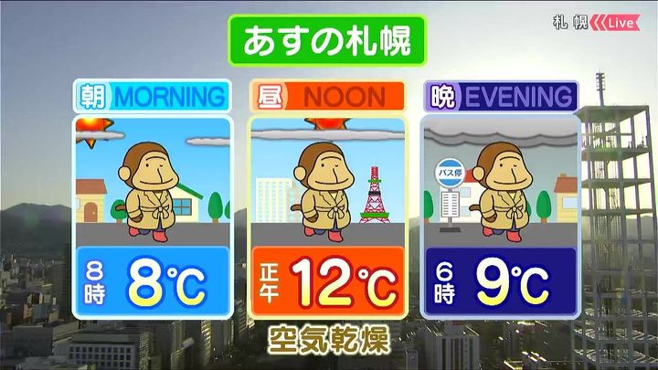 あす15日(水)の札幌です!朝昼晩の天気をもんすけでお伝えします!