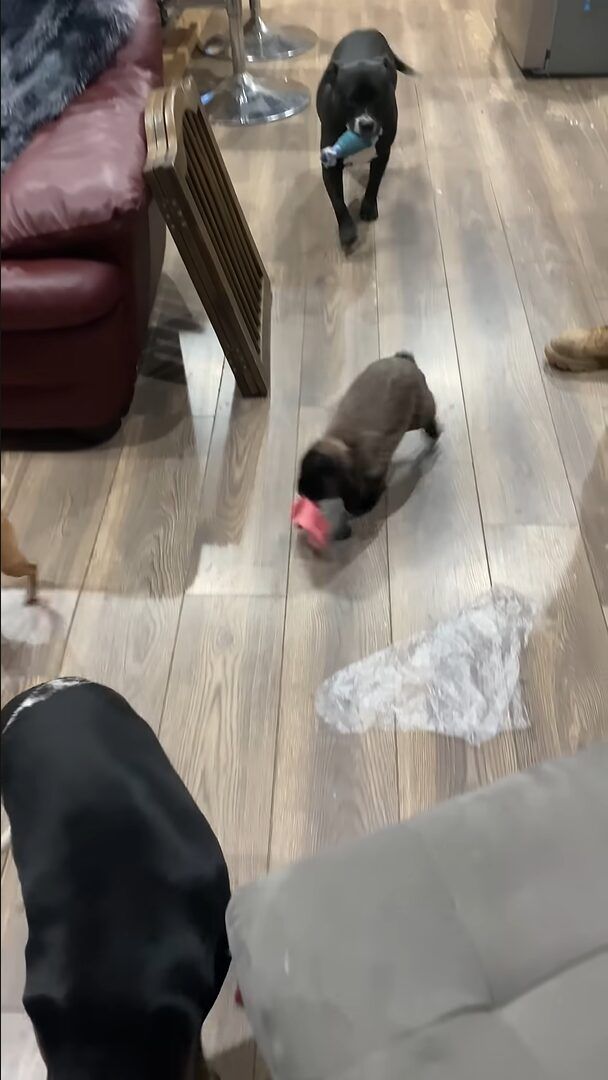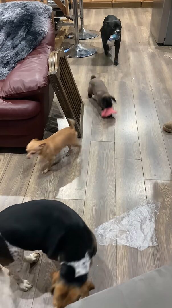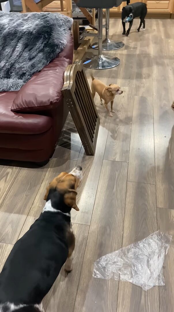 ご紹介する動画が撮影されたのは、アメリカ・オハイオ州のとあるお宅。 こちらのお宅では、イヌの多頭飼いをしているようです。