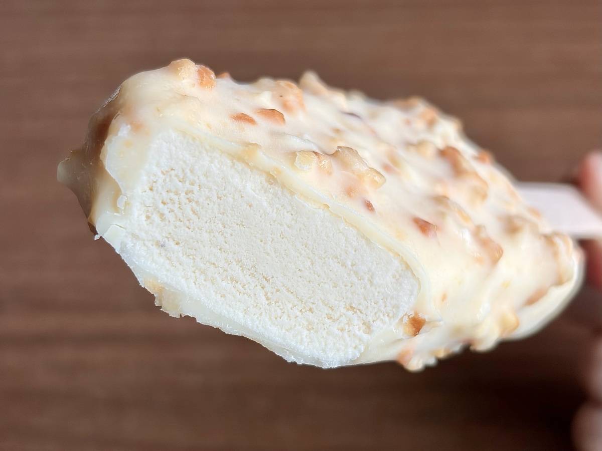 マカダミアナッツチョコでしっかりコーティングされたマカダミアナッツアイス。