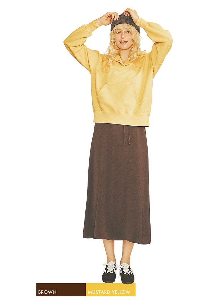 おなじみのブラウン×ベージュ配色をマイナーチェンジする感覚で、発色をおさえたマイルドなイエローを投入。リラクシーなムードはくずさず、いつもよりちょっと華やかに仕上がる。