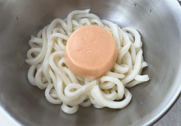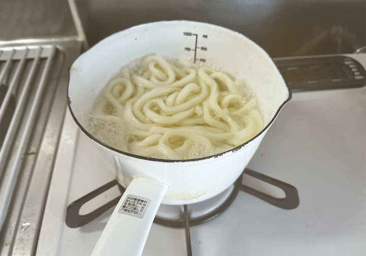 今回は茹でるタイプのうどんを使いましたが、冷凍うどんをレンジで温めれば、さらに手軽に作れます。