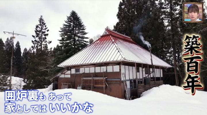 アスファルトが見えないくらい雪がかぶった山道を慎重に車を走らせ辿りついた山頂。森に囲まれ雪で真っ白な敷地の真ん中に、入母屋造りの赤い屋根のポツンと一軒家が現れた。煙がのぼるその古民家には、58歳のご主人と51歳の奥さんが夫婦二人で暮らしていた。