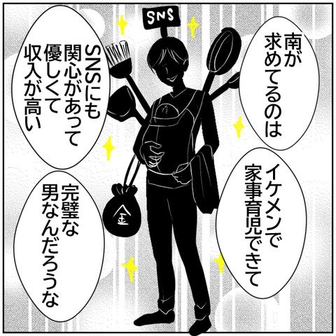 北斗は気づいていないふりをしながら、二人の不倫の証拠を集める。やがて南と北斗は離婚。息子の親権をめぐって争うが、「パパとバイバイはやだ!」と息子は北斗を選ぶ。一方、離婚したら「責任を取る」と再婚をほのめかしていた元カレは、「子連れなら再婚しない」と発言。けっきょく南は親権をあきらめ、元カレと再婚したのだが…。