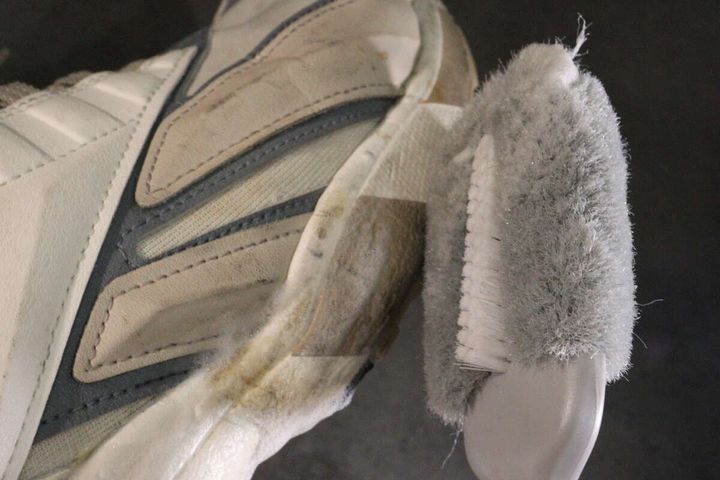 スニーカーの隅々まで力を入れやすく、汚れをこすり落としやすい設計になっています。