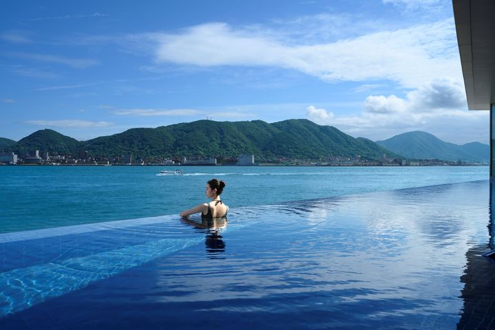 翌朝は、「なみなみテラス」で朝日を眺めながらの「海風ストレッチ」(無料)に参加したり、海水を利用したインフィニティプールに入ったりしながら、海峡の心地よい風を体感してみては。