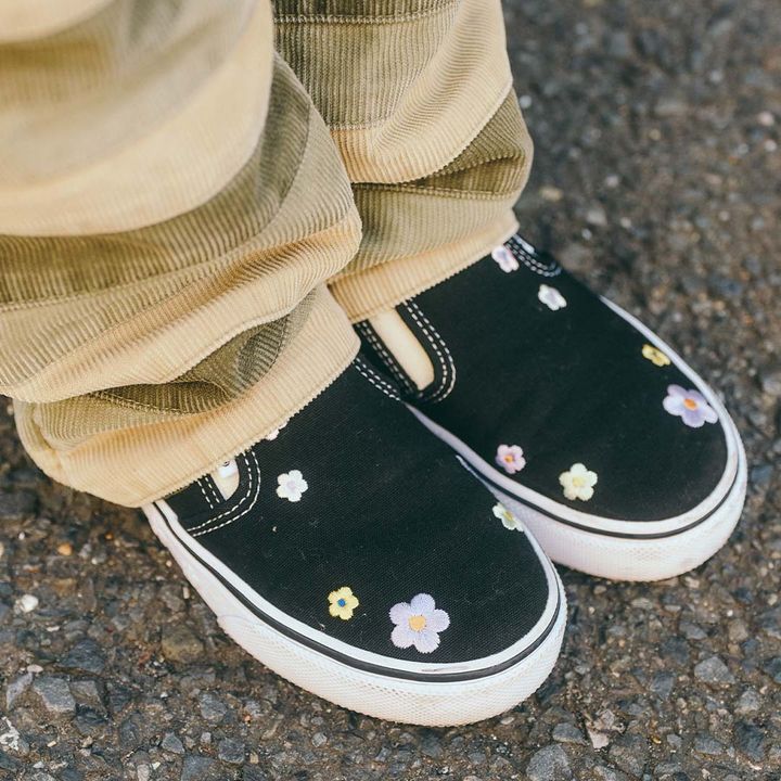 定番シューズの『バンズ』スリッポンは、小花の刺しゅうのものをチョイス。ほのかなキュートさに、遊び心ある足元にアップグレード♪