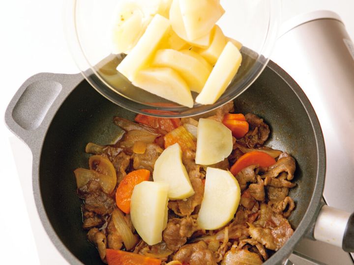 ● 肉や玉ねぎにはしっかり味をつけ、じゃがいもは薄味に。