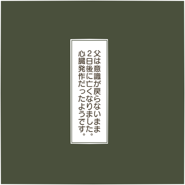 家族を大事にしてこなかった父。別に居なくなってもいいと思いました。いちばん身近である家族にそんなことを思われている父も哀れなのかもしれません。そしてついにその時がきたのです。